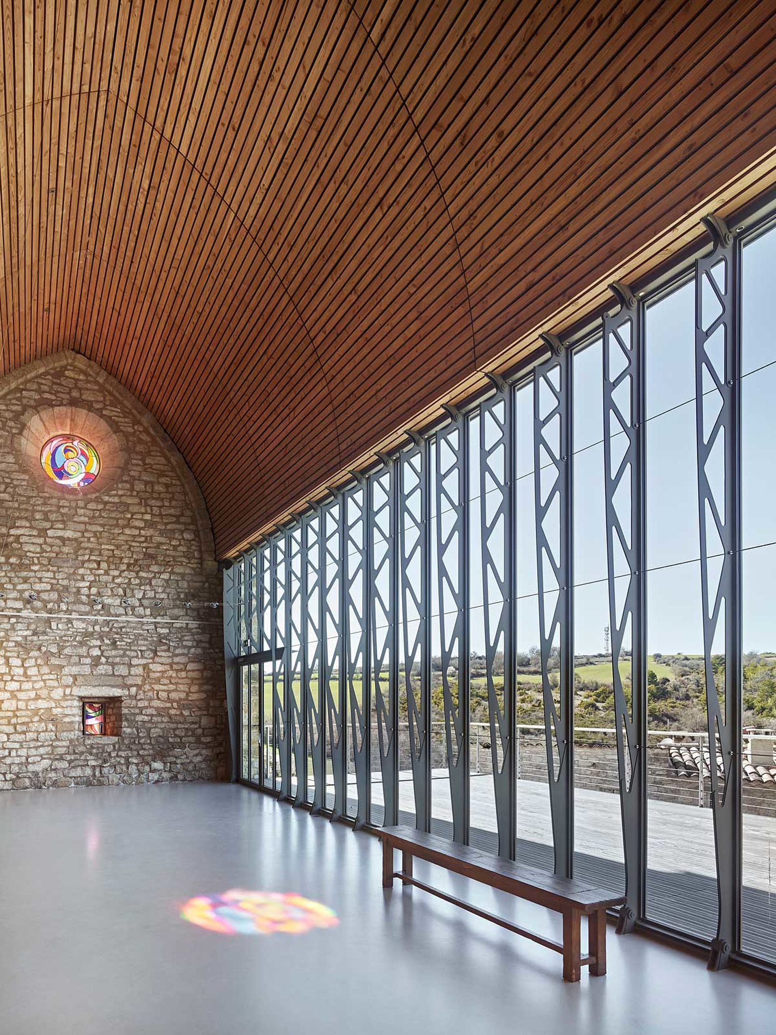 Restauro della chiesa Saint-Christophe del 13 ° secolo. Un perfetto connubio tra vecchie mura e aspetto moderno. La facciata continua termicamente isolata con porta d'ingresso antincendio integrata garantisce il massimo di trasparenza e dell'incidenza della luce.